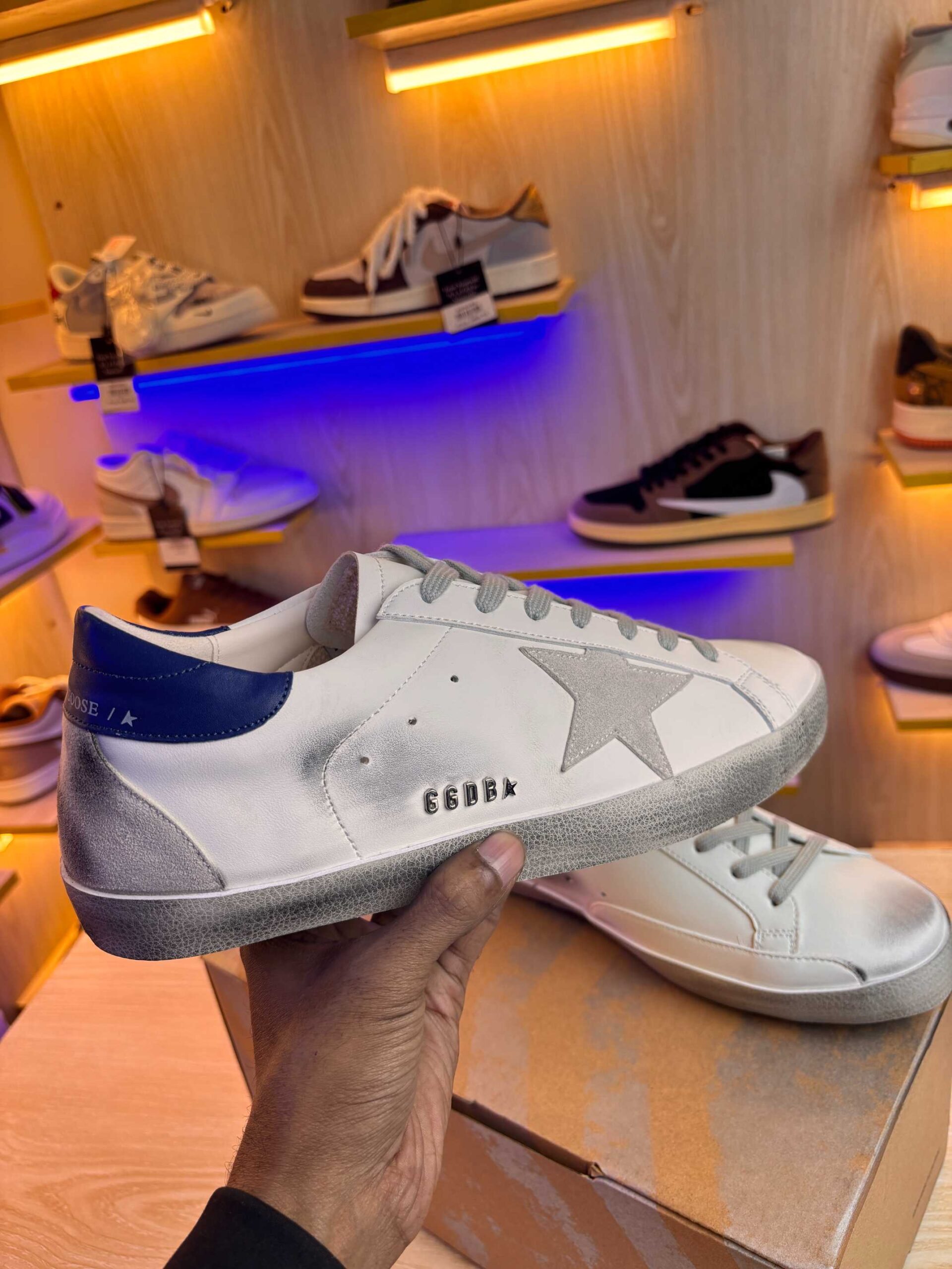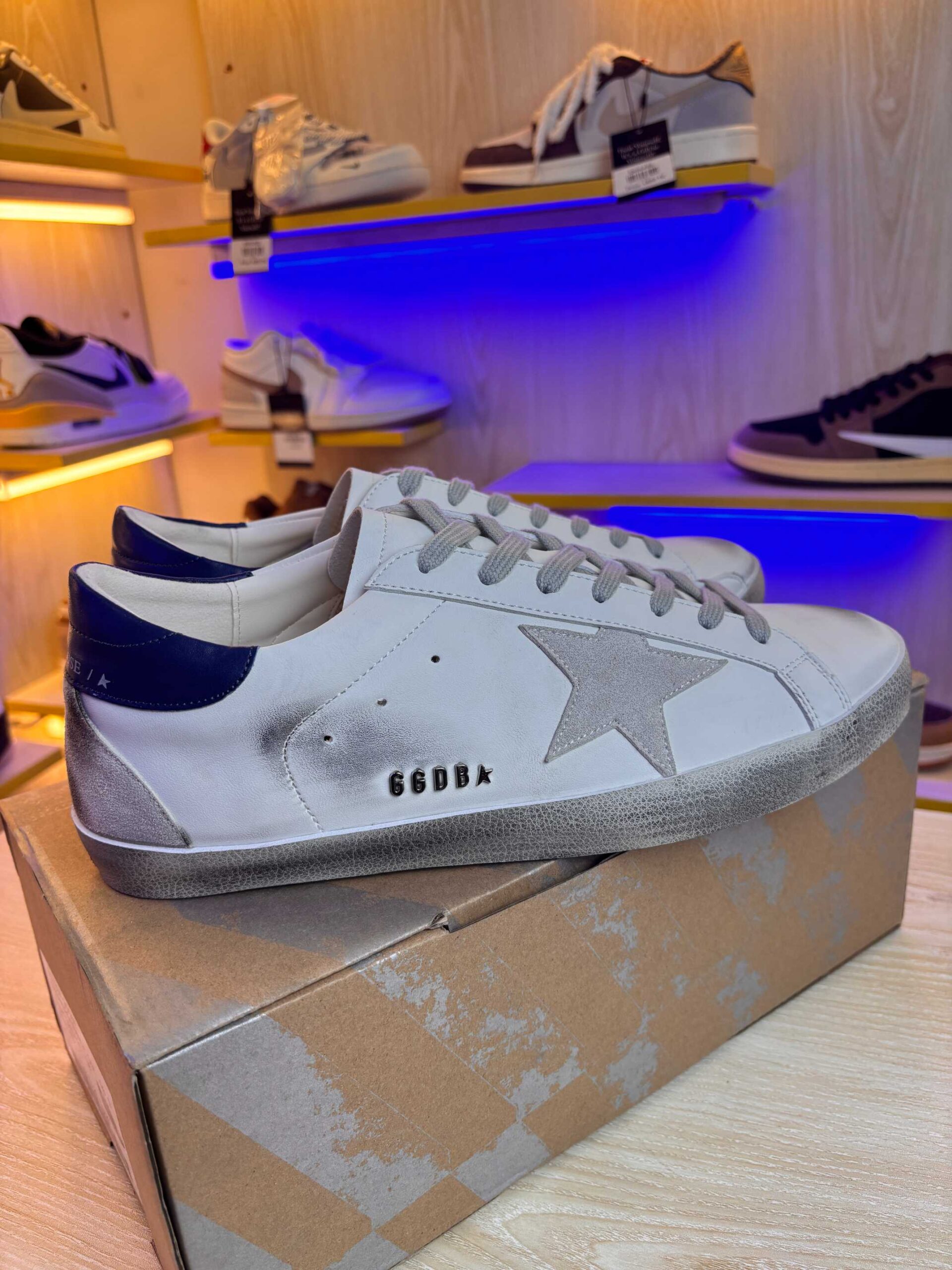 Golden Goose Super-Star sneakers | White Royal Blue Grey Suede Patch